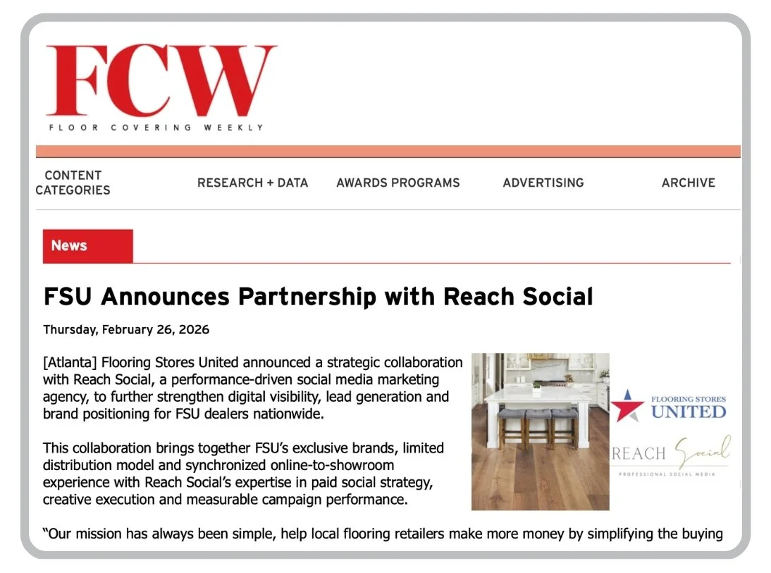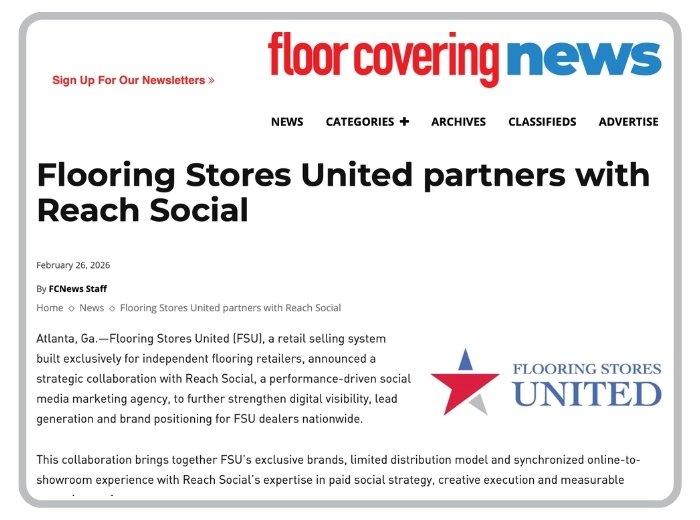 Atlanta, GA - Flooring Stores United announced a strategic collaboration with Reach Social, a performance-driven social media marketing agency, to further strengthen digital visibility, lead generation and brand positioning for FSU dealers nationwide.